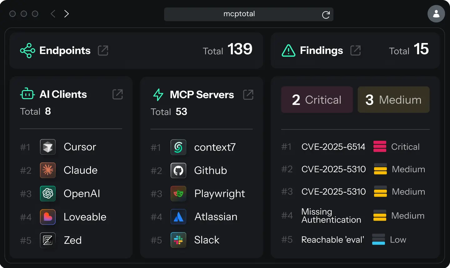 MCPTotal provides an OS-native security agent to monitor and enforce controls at execution time.