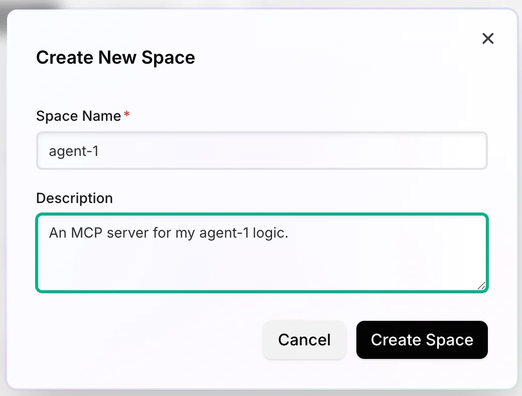 A space is an aggregation of MCP tools running as one MCP endpoint in a cloud hosted isolated container.