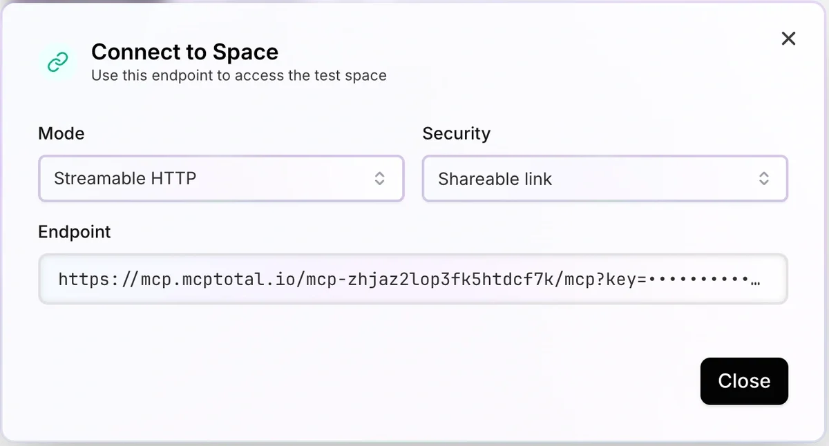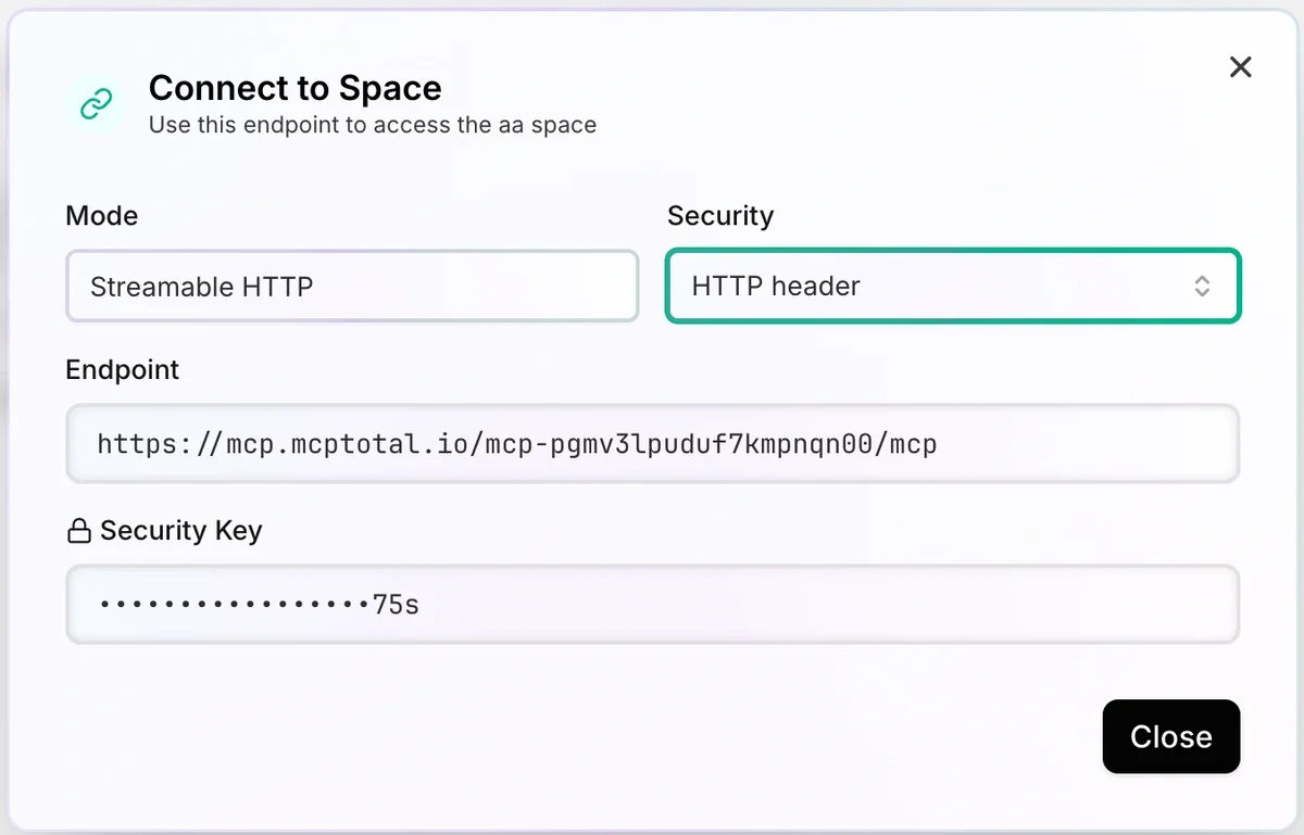 Fortunately, our platform allows connecting to a space’s MCP server, supporting multiple protocols and authentication methods.